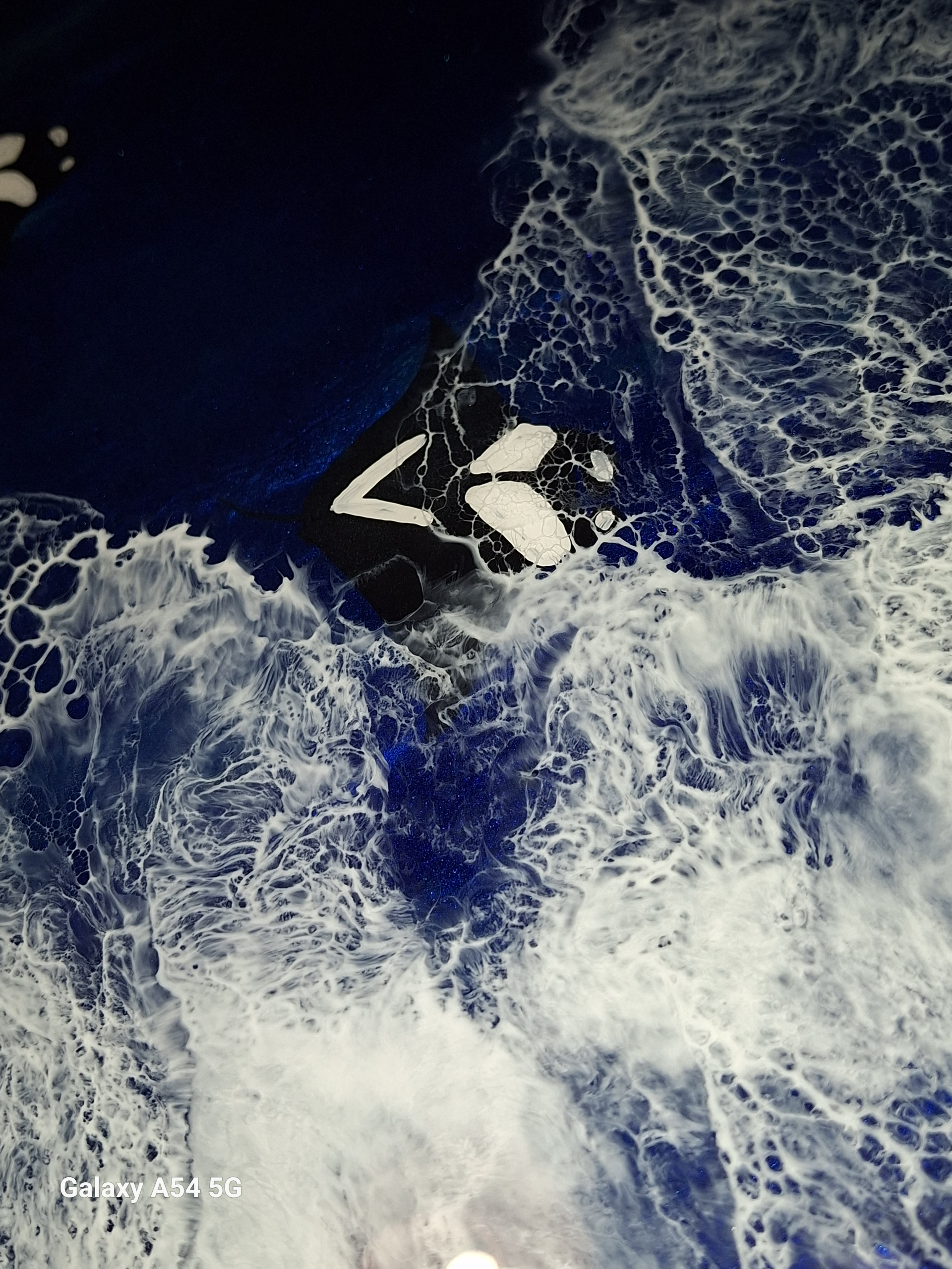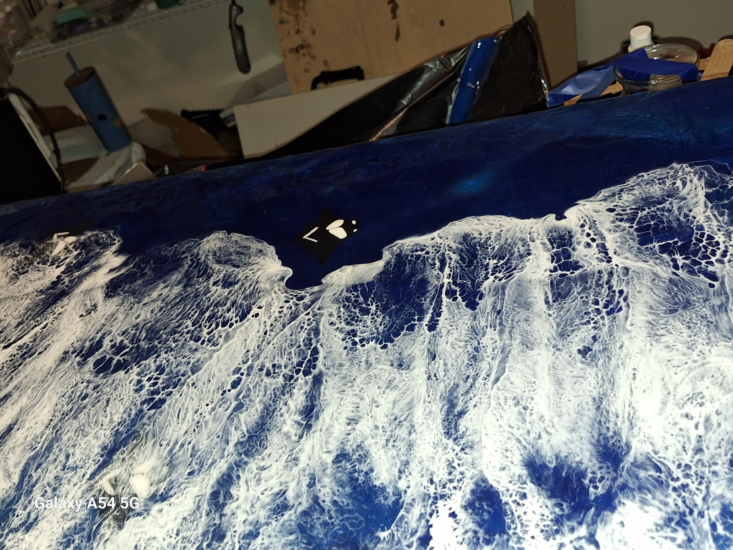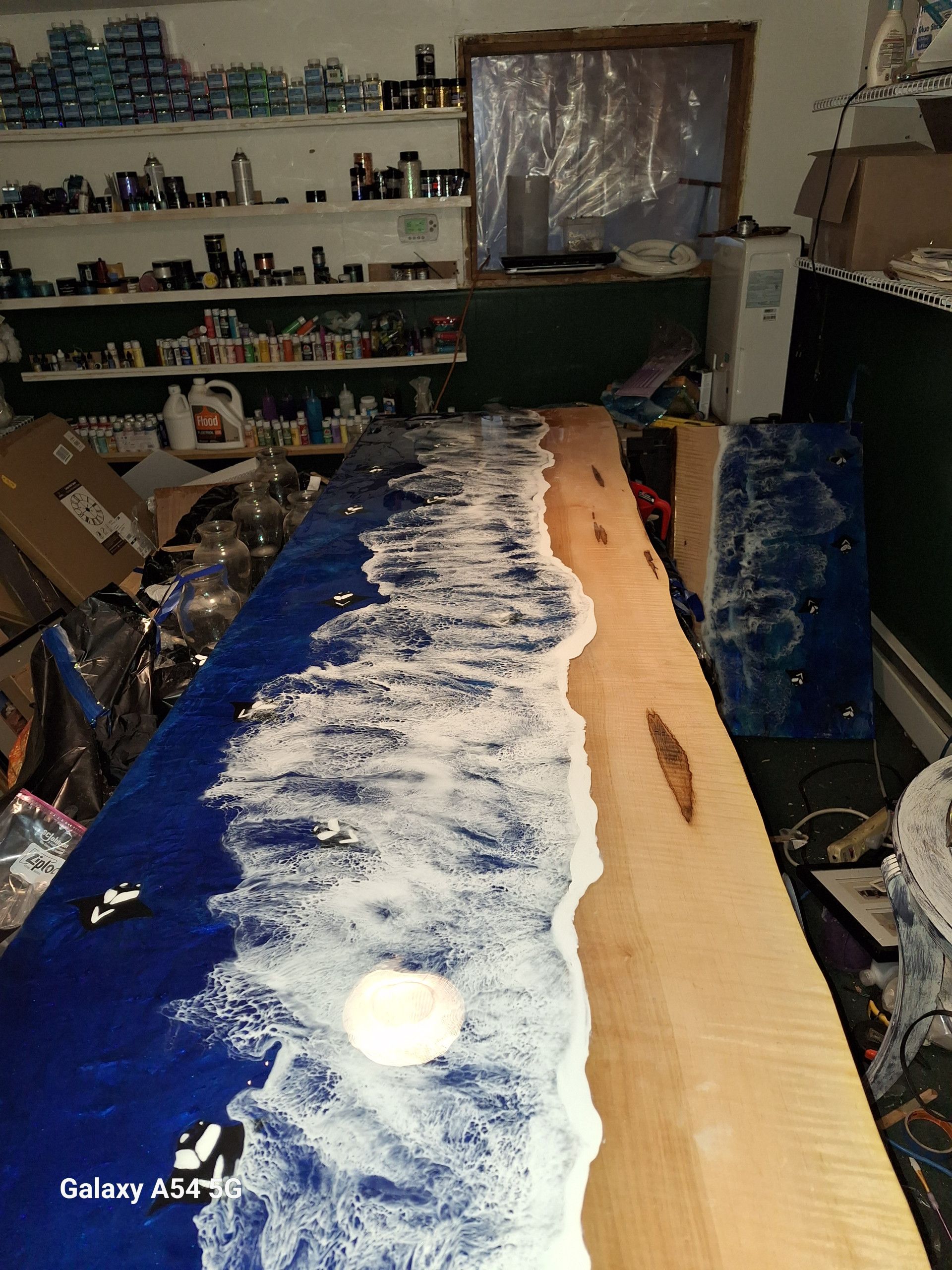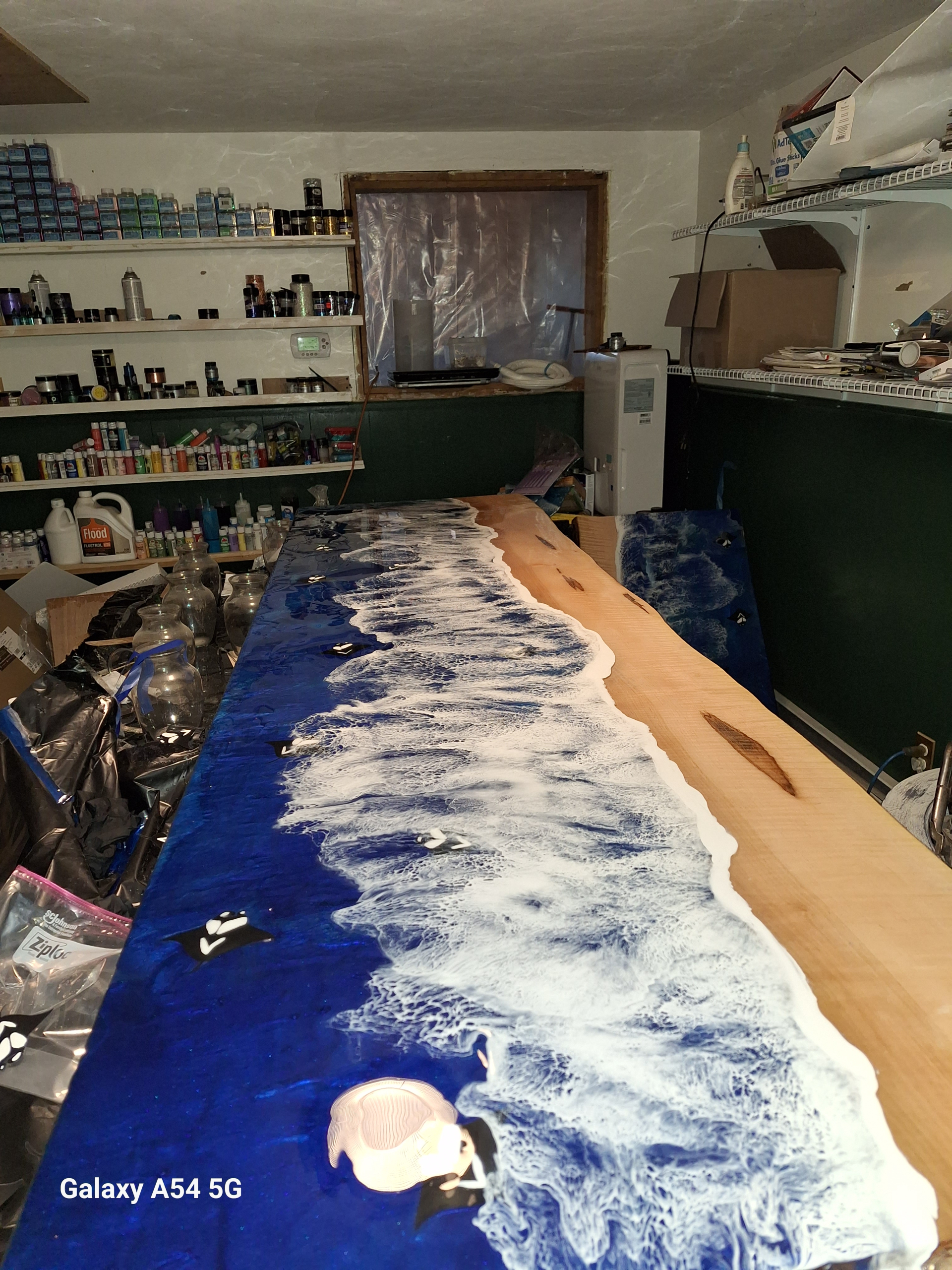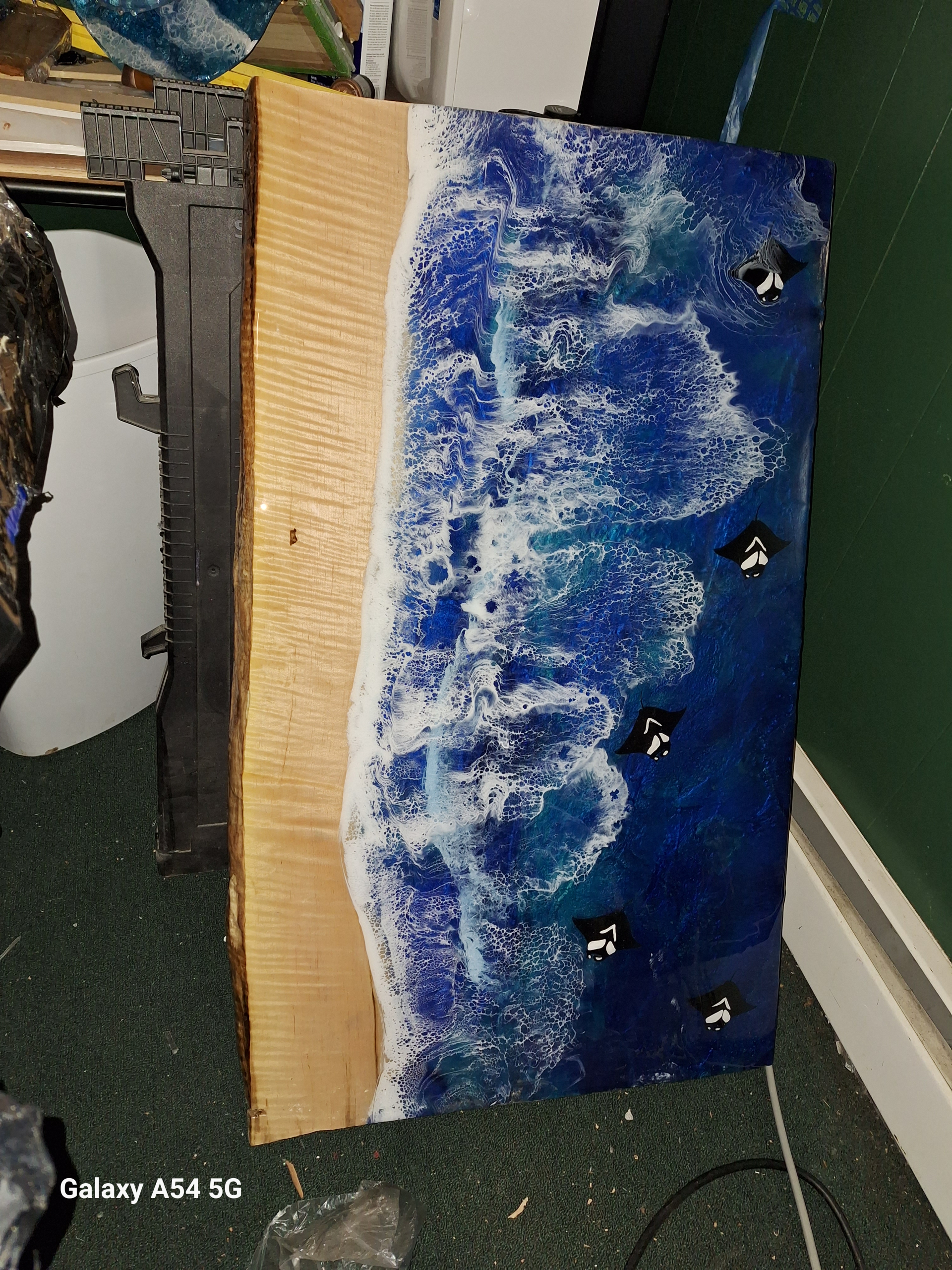 Custom Maple Ocean counter tops with Manta rays in the waves